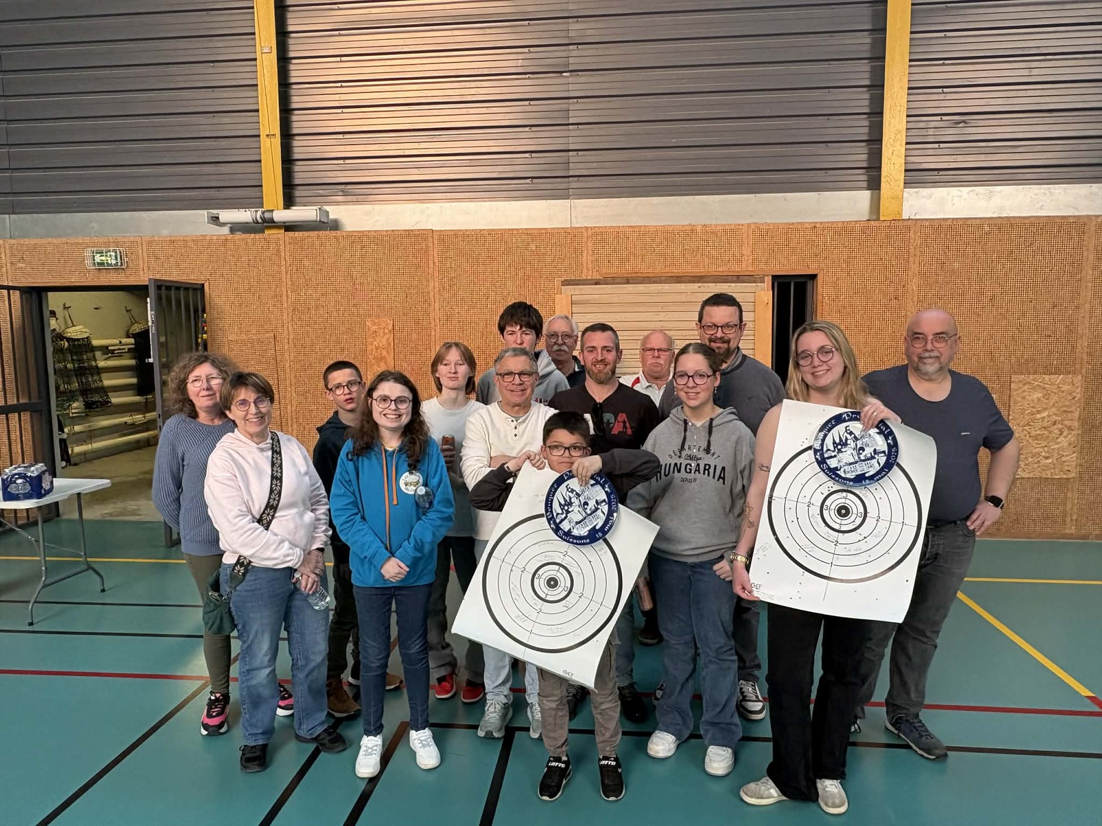 Cette année, le traditionnel tir à l'assiette a eu lieu le samedi 21 mars à la salle de sport. Tous nos archers n'avaient pas pu répondre présents, c'est compréhensible, car certains avaient des obligations professionnelles et ou familiales. Malgré tout, 50 % des archers étaient présents et la bonne humeur régnait et la tradition fut respectée, ce qui est, avant tout, l'essentiel.